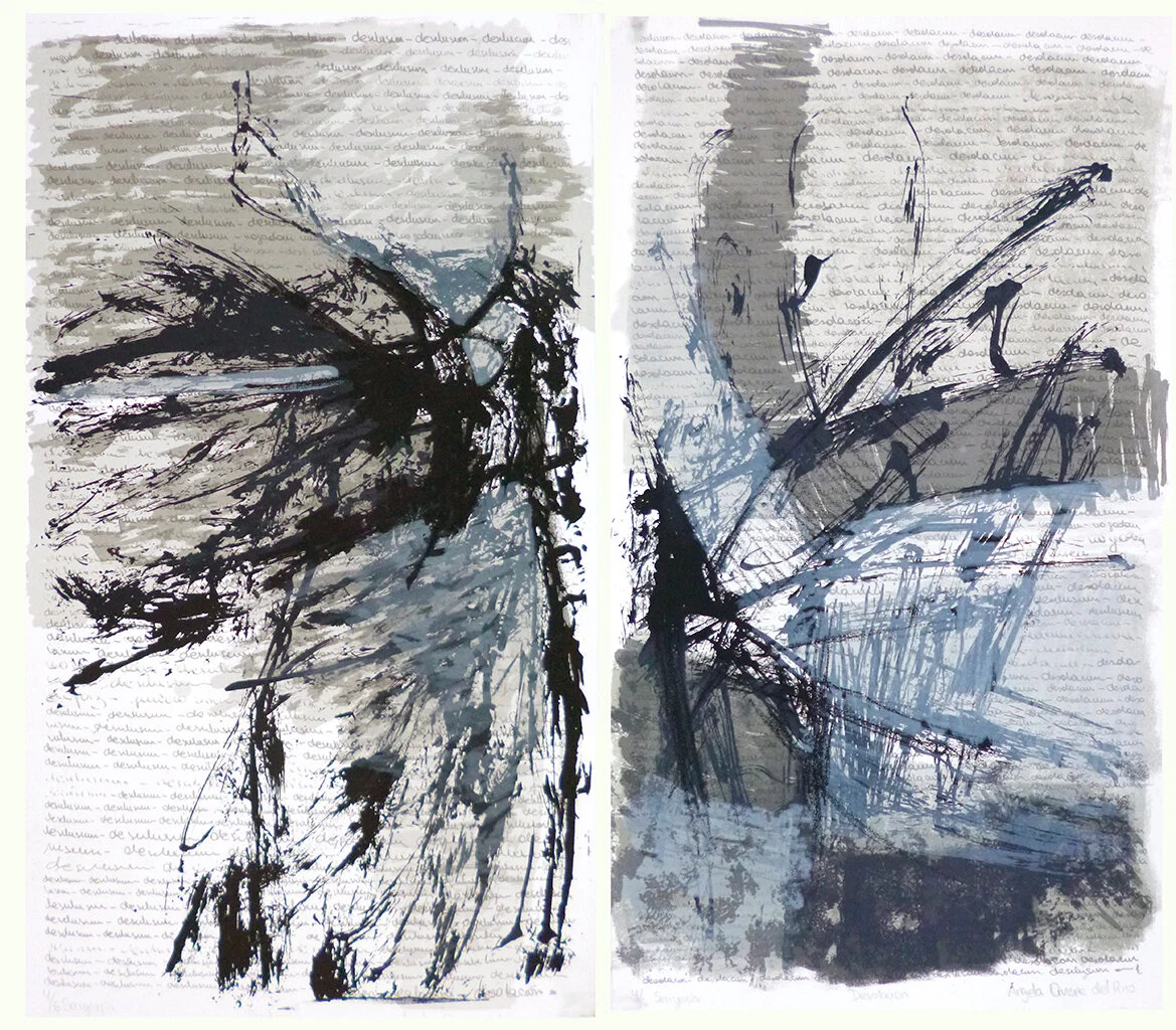 La etapa de manchas, chorreados y texturas me permitió seguir buscando mi lenguaje, algo que me permita explotar técnicamente las diferentes modalidades del grabado